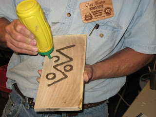 Here he's showing how he lays out a pattern in mud, then uses the torch to burn in the design